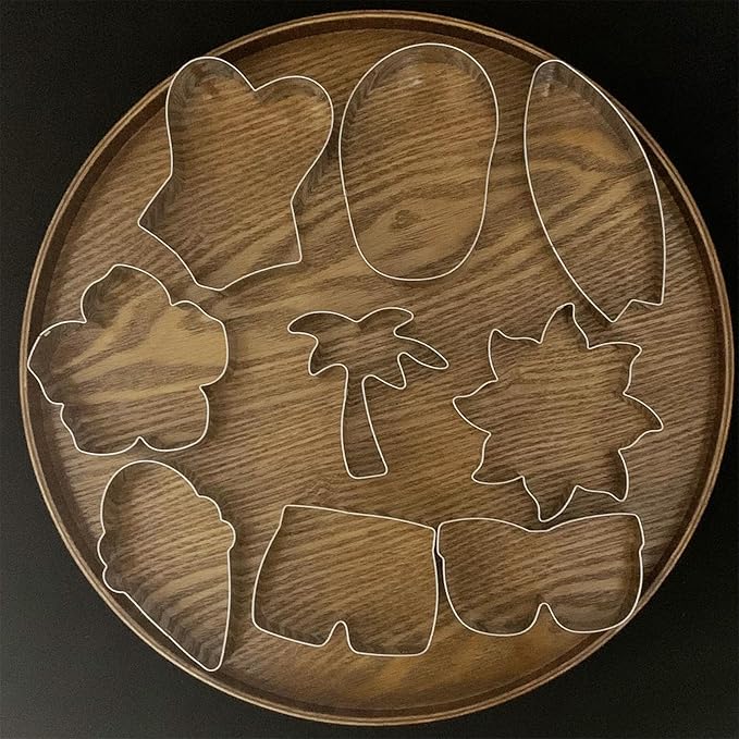 - Package:9 assorted shapes cookie cutters, Flip Flop, Sunglasses, Sun, Ice Cream, Palm Tree, Bathing Suit, Tropical Flower, Surfboard, very cute, will be a big hit to the summer party!