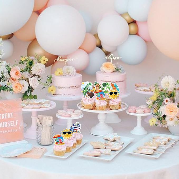 - Application: Perfect decoration for cupcakes,cookies, cakes, fruits, brownies, ice cream and more,particularly suit to use on summer beach hawaii theme party,baby shower party,kids birthday cupcake decorations supplies