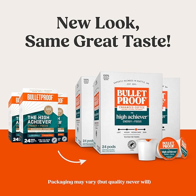- Unbeatable Taste: Contains three 24-count boxes of High Achiever enhanced coffee pods, an adaptogenic mushroom coffee with Lion's Mane, B vitamins and coffeeberry, Packaging May Vary