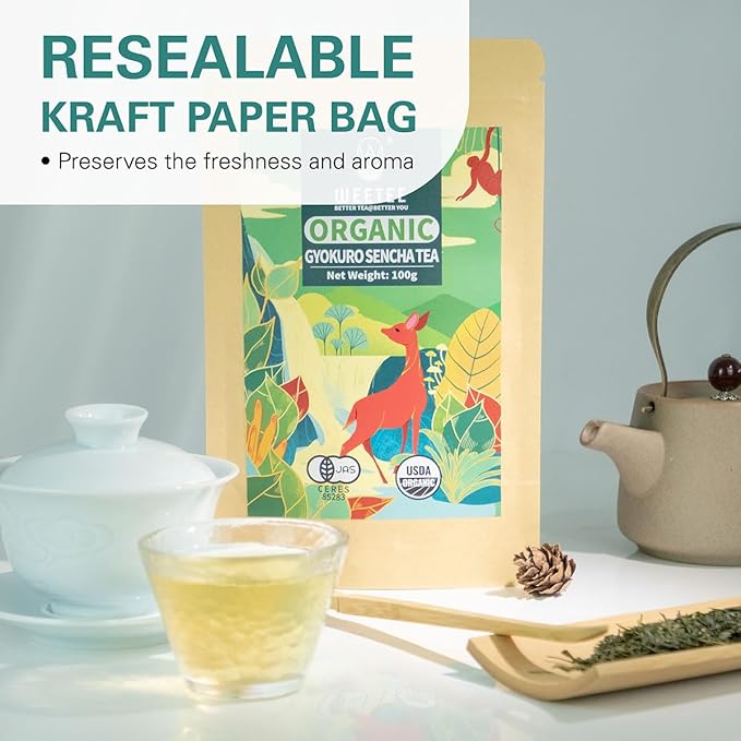 WT WEETEE Organic Sencha Green Tea, Organic Steamed Sencha Green Tea Loose Leaf, Shade Grown Gyokuro 100g/3.5oz, Smooth & Refreshing, Natural Caffeine & Antioxidant