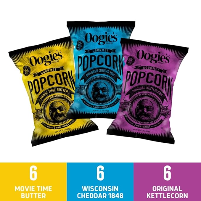 Oogie's Gourmet Popcorn | 18 Pack | Variety Flavor Pack | Gluten Free Popcorn Snacks | 1oz Individual Bags