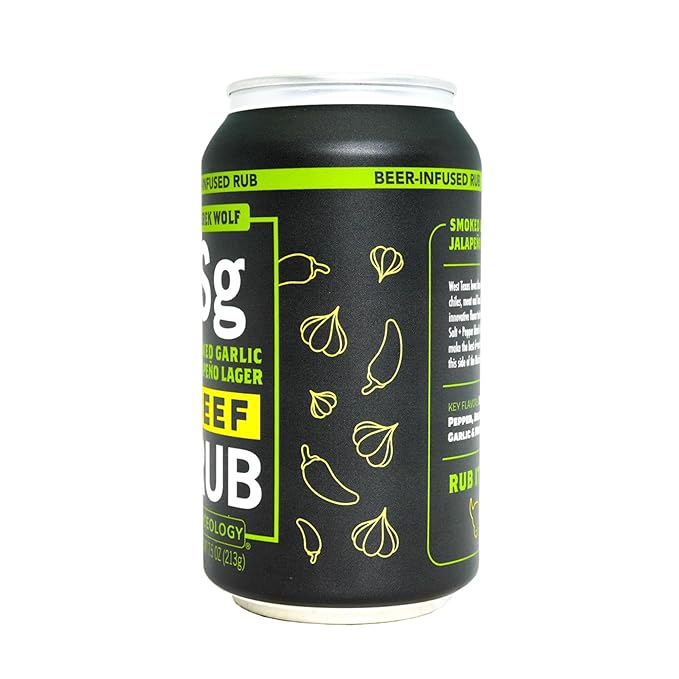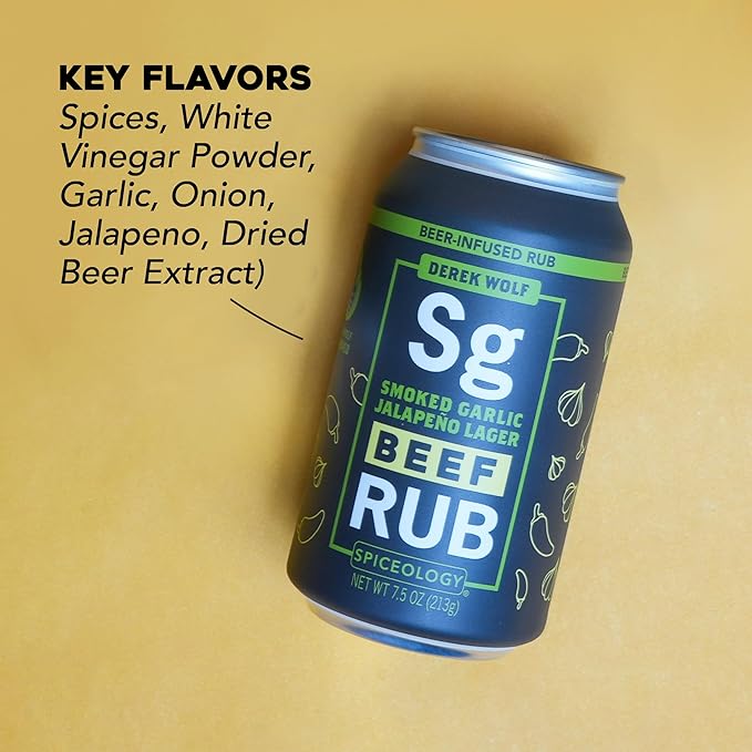 Spiceology & Derek Wolf - Smoked Garlic Jalapeno Lager - Beer-Infused Barbecue Rubs, Spices and Seasonings - Use On: Beef, Pasta Salad, Dressings, Marinades, or Roasted Vegetables - 7.5 oz Can with Resealable Lid