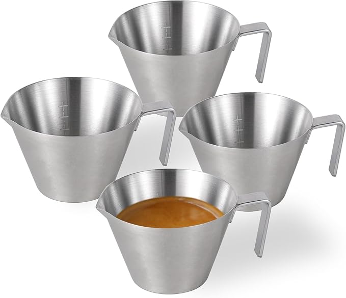 MHW-3BOMBER Espresso Shot Cups with Handle Espresso Measuring Cup Dishwasher Safe 4Pcs Stainless Steel Pouring Cup for Tomato Sauce|Steak Sauce|Dessert|Beverage (Matte Glossy) G7000-OS