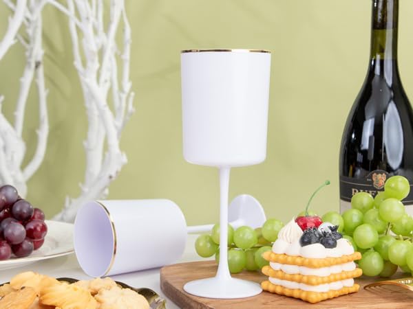Ciaell 12 Pack White Plastic Wine Glasses with Stem - 10 Oz White and Gold Disposable Wine Glasses for Parties & Weddings & Poolside & Toasting & Outdoors & Graduation