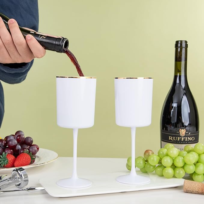 - 🥂Perfect for Any Occasions: This white plastic wine glasses is perfect for both hot and cold beverages, making it ideal for everyday use, parties, or outdoor events. Its versatile design allows you to use plastic wine glasses with stem in any setting, whether you're at home, work, or on vacation. Plus, its sleek and stylish design makes this plastic wine glasses disposable a great gift option for friends and family who appreciate quality and style.
