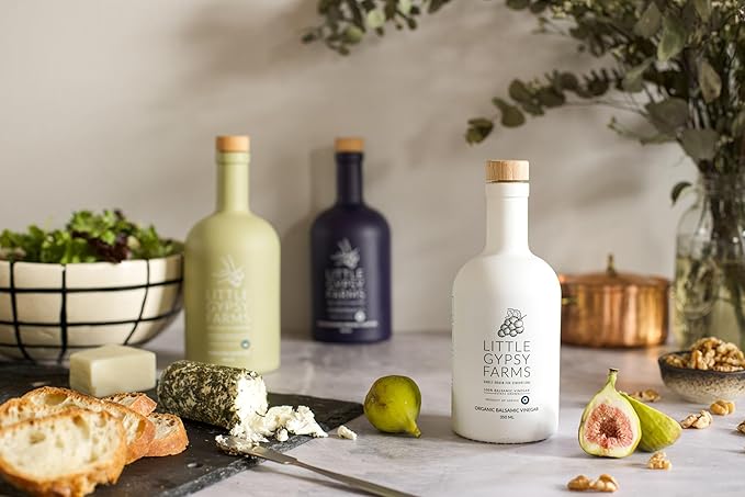 Organic Balsamic Vinegar from Little Gypsy Farms | First Cold-Pressed and Oak Barrel Aged | Notes of Fig with Strawberry Finish | Single Family Farms in Greece (350ml)