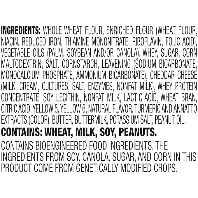 - Baked with whole grain: real cheddar cheese filling between two crackers baked with whole grain