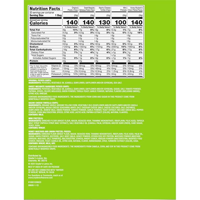 Snyder's of Hanover, Cape Cod and Late July Snacks Variety Pack, 30 Count Snack Bags