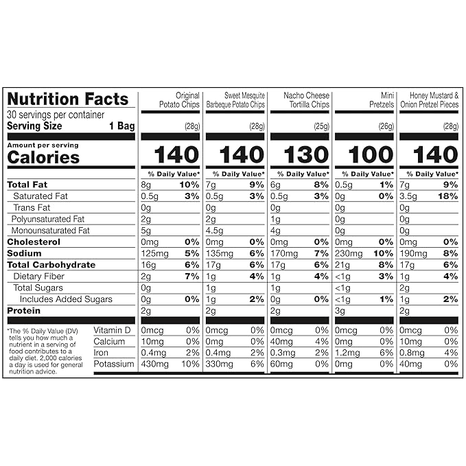 - Variety pack of 30 individual snack bags, perfect for on-the-go