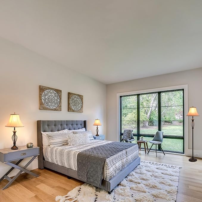- 【ELEGANT E26 LAMP SOCKET DESIGN】This three lamps has a built-in E26 Socket design.Fully Compatible with LED, Incandescent, Halogen Bulb( Bulb NOT Included). Floor Lamp: Incandescent 100W/LED 10W;Table Lamp: Incandescent 60W/LED 7W.With a classic and solid metal stand can prevent the lampshade set from shaking.