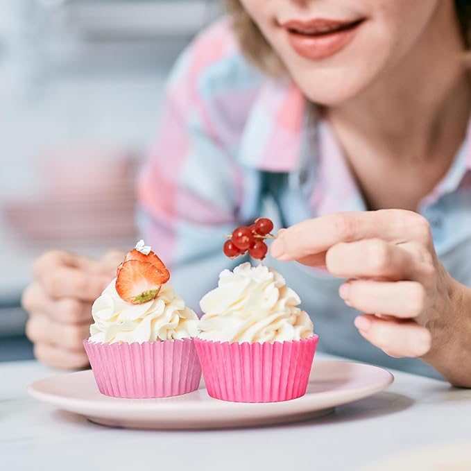 Whaline 600Pcs Pink Cupcake Liners Pink Cupcake Wrappers Disposable Paper Baking Cups 3 Styles Baking Liners Holders for Baby Shower Wedding Bridal Showers Birthday Party Supply