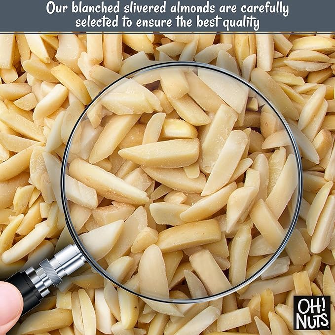 Oh! Nuts Almonds Blanched Slivered - Raw - 100% Natural - 2 lb - High-Protein Almond - Packed in New York Zip-Seal Bag for Exceptional Freshness
