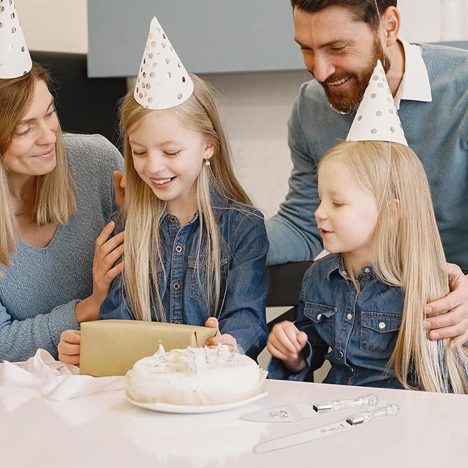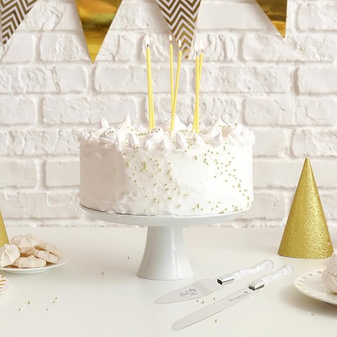 - 🍰Premium Material- Imitated crystal handles with stainless steel blades, mirror polished, rust-proof, high-temperature and corrosion-resistant. Cake server is 10.8 inch/27.5cm long, cake knife is 13.2 inch/33.5cm long, the perfect size for cake cutting and serving.