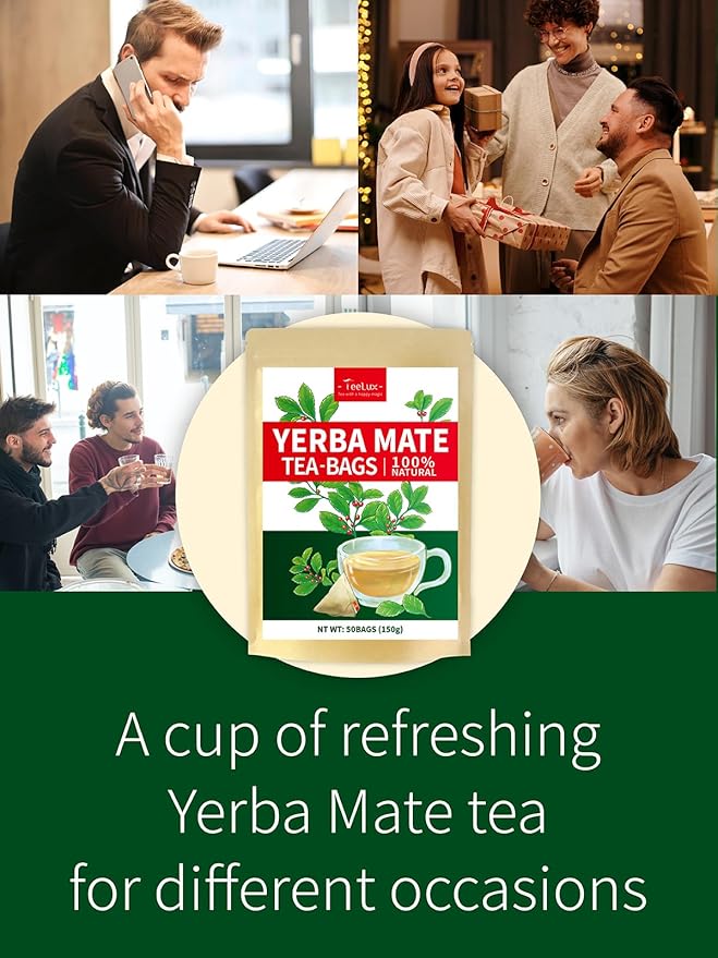 TeeLux Yerba Mate Tea Bags, 3g/bag, Unsmoked Yerba Mate Tea, Rich in Antioxidant, Hot & Iced Tea, 50 Count