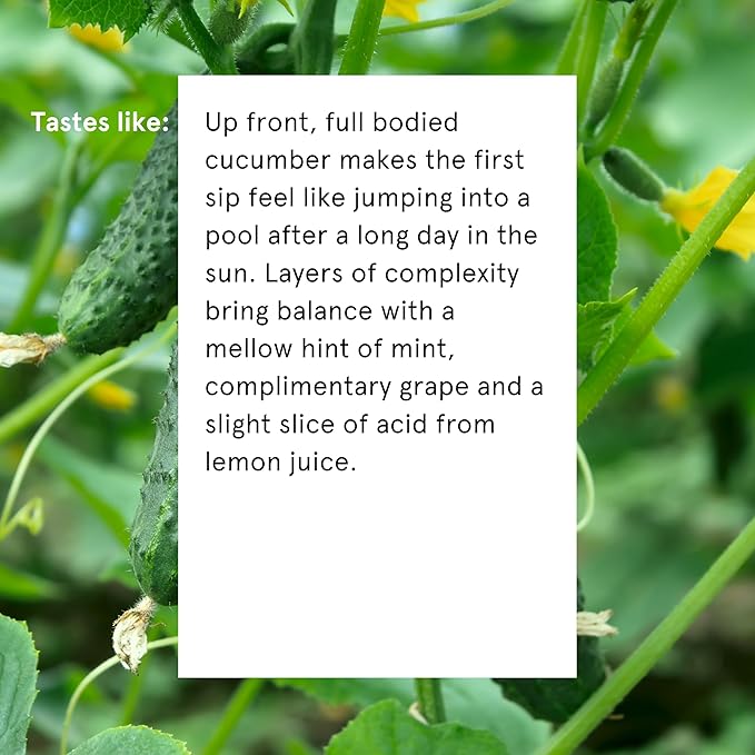 - 🥒 TASTE THE DIFFERENCE: Tastes like a holiday in can, hence having the picture of a holiday on the can, not a cucumber as you might expect... we like a bit of semiotic tomfoolery.