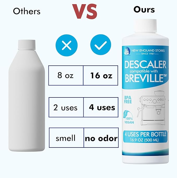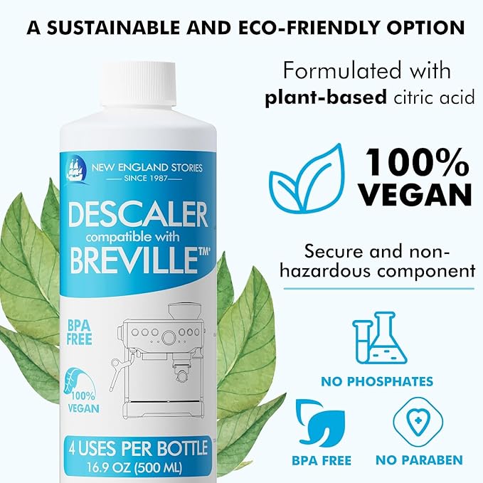 - Eco-friendly – The Breville Compatible descaling solution is specially formulated to clean your machine while being environmentally friendly and safe.