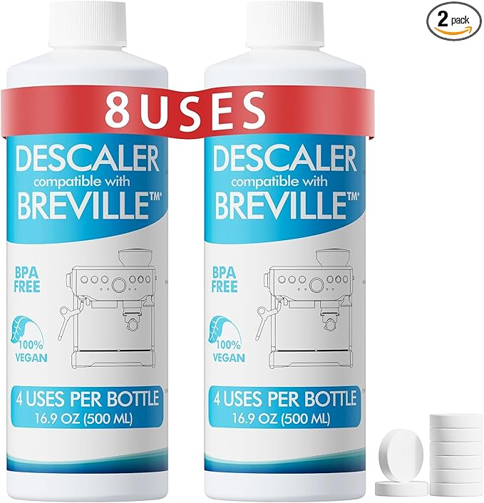 8 Uses Breville Compatible Descaling Solution, 2 Years Descaler Kit Come with 8 Cleaning Tablets, Maintenance Kit Specially Designed to Clean Breville Machines (4 Use Each Bottle, 2 Bottles)