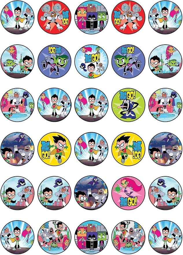 30 x Edible Cupcake Toppers Themed of The Titans Go! Edible Cake Decorations | Uncut Edible on Wafer Sheet
