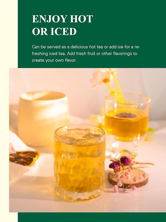 - [100 COUNT ECO-CONSCIOUS TEA BAGS] - Our premium tea bags are made from non-GMO plant fiber, and tea bags are unbleached and compostable. No string and no tag. No extra waste - just healthy & delicious tea!