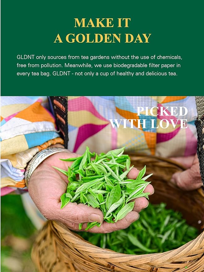 - [PREMIUM GREEN TEA DECAF] - GLDNT decaf green tea is decaffeinated using the CO2 process which retains maximum flavors and antioxidants. You can enjoy it as delicious hot tea or refreshing iced tea throughout the day.