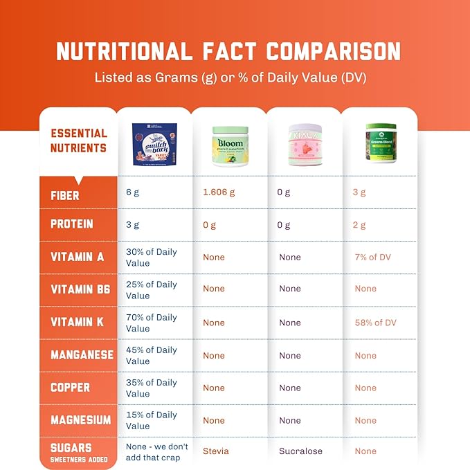 - TRANSFORM YOUR HEALTH: In less than 60 seconds you can start changing your health for the better. Switchback makes it easy to fuel your body with real, nutrient-dense produce, delivering the vitamins, fiber, and energy you need to feel your best every day.
