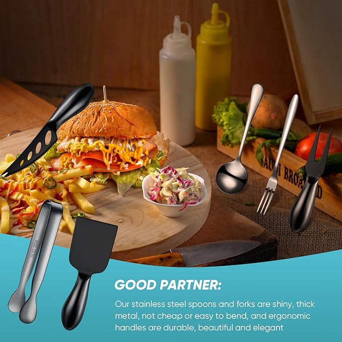 - Wide applications: this spreader knife set is suitable for cheese, butter, or cream, and the spoons, forks, and tongs can be applied for coffee, desserts, yogurt, ice cream, appetizers, sauces, condiments, sugar, and so on, multipurpose kitchen tool for you