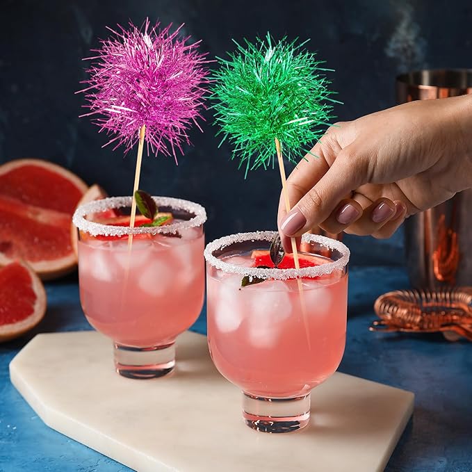 Chinco 100 Pcs Foil Firework Cupcake Toppers Sparkle Tinsel Cake Toppers Cake Decoration Cocktail Fruit Toothpick for Birthday Wedding Graduation Party(Pink, Green)