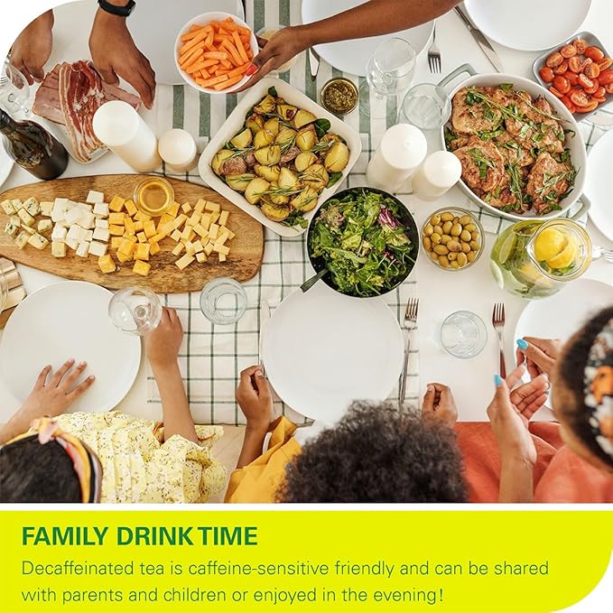 - 【Eco-Conscious Design】100 decaf lemon green tea bags (unbleached and compostable, no staples, string, bags, or extra waste) packed in a resealable kraft paper bag to keep them fresh.