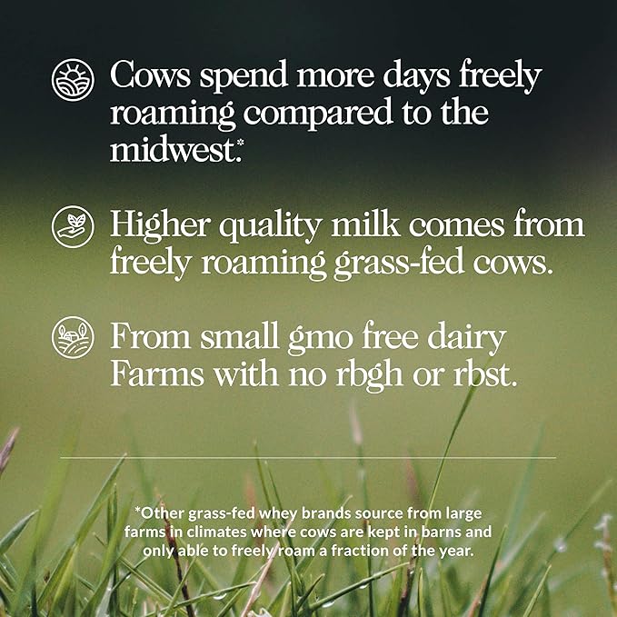 - MAXIMUM NUTRITION: 25g of Protein, 7g of Sugar, 13g of Carbs, 180 Calories, and 6.2g of BCAAs (branched-chain amino acid) per serving. *Sold by weight, not size of container. Our grass fed whey is a dense protein and significantly heavier than other proteins such as pea or rice.