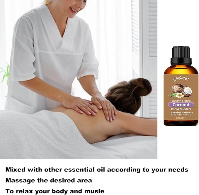 - Organic Coconut Oil For Skin: No additives or fillers. yethious Coconut Essential oils are used for skin, massage, baths, diffuser, saunas, air freshening, or soaps and hair care, scented candles, etc.