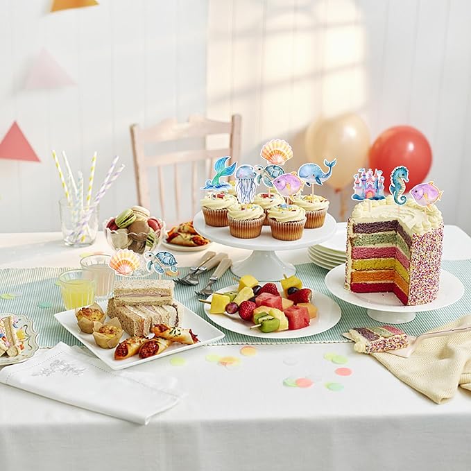- APPLICATION:Perfect decoration for cupcakes,cookies, cakes, fruits, brownies, ice cream and more,particularly suit to use on sea theme cupcake toppers,mermaid theme party,baby shower theme party,kids birthday party cupcake decorations supplies