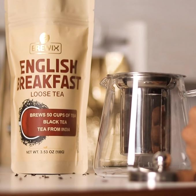 BREWIX, English Breakfast Black Tea Leaves (50+ Cups, 3.53oz/100g) Gluten Free | Strong, Robust & Aromatic | High Caffeine Loose Leaf