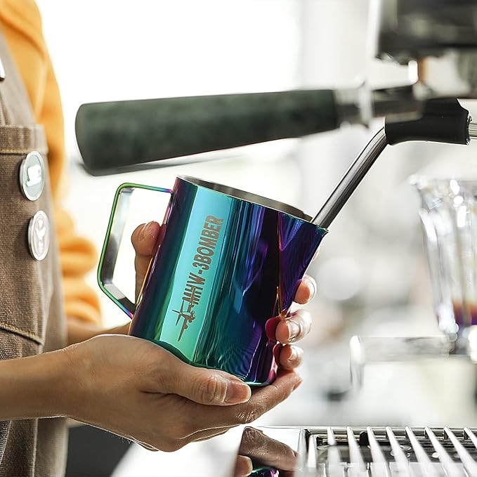 MHW-3BOMBER Milk Frothing Pitcher 16.9oz/500ml Latte Art Pitcher Stainless Steel Espresso Steaming Pitcher Colorful Barista Milk Jug P5911C-OS