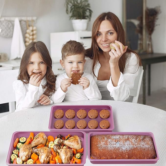 - ๐ก๐ผ๐ป ๐ง๐ผ๐ ๐ถ๐ฐ ๐๐ผ๐ผ๐ธ๐ถ๐ฒ ๐ฆ๐ต๐ฒ๐ฒ๐๐- Keep Your Baking Safe And Healthy! These Nonstick Baking Sheets - Cookie Sheet Pans Are Free From Harmful Chemicals Like PFOA And BPA, Featuring A Food-Safe PTFE Coating. With Their Baking Sheets Non Stick Surface, Thereโs No Need For Liners Or Greasing. Durable And Rust-Resistant, These Pink Cookie Sheets For Baking Nonstick Are Designed For Everyday Use. Prioritize Health And Convenience With These Nonstick Cookie Sheet pans for baking.
