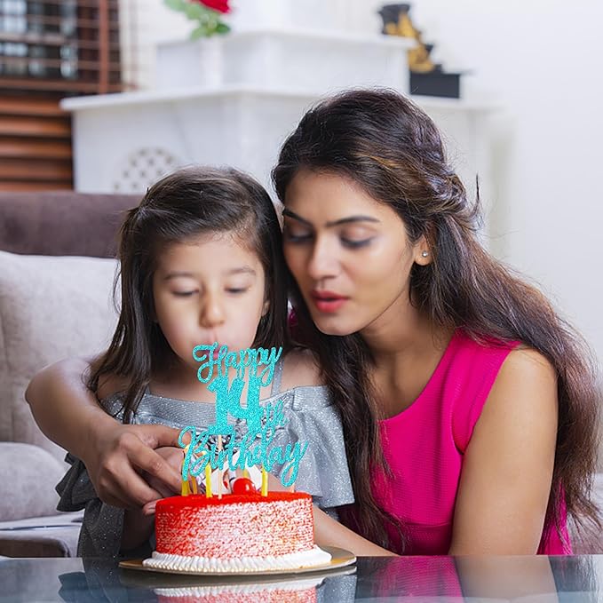 1 PCS Happy 14th Birthday Cake Topper Glitter Cheers to 14 Years Birthday Cake Pick Fourteen Hello 14 Fabulous Cake Decoration for Happy 14th Birthday Anniversary Party Decorations Supplies Blue