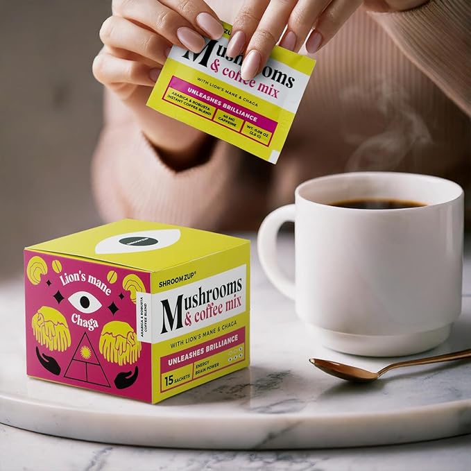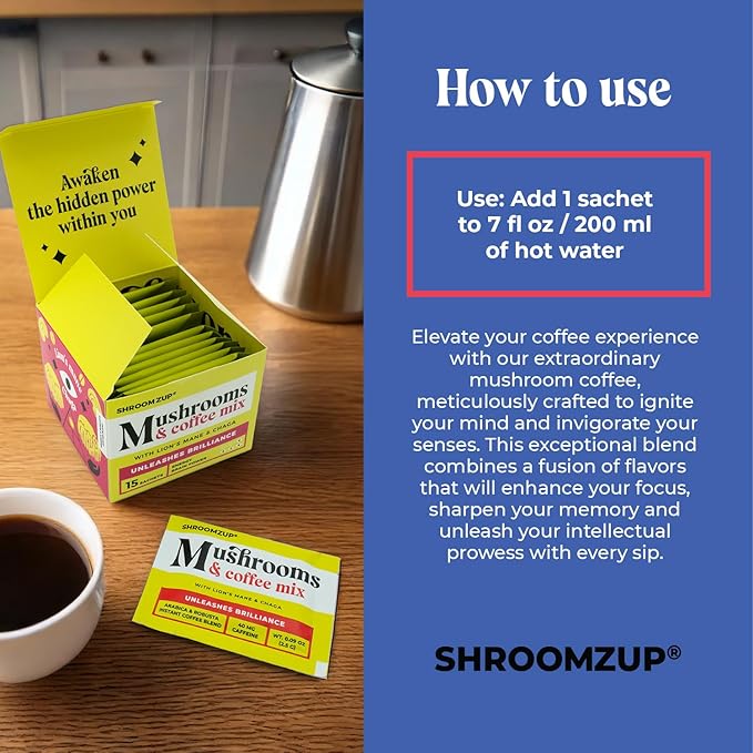- 🍄 MUSHROOM COFFEE FOR YOUR HEALTH: Lion's Mane & Chaga's mushrooms health benefits include full body support & enhanced energy. Our instant mushroom coffee helps your body remain in its best shape. Our instant mushroom coffee is crafted without added flavorings. It is Vegan, Keto & Gluten-Free. Each box contains 15 on the go sachets.