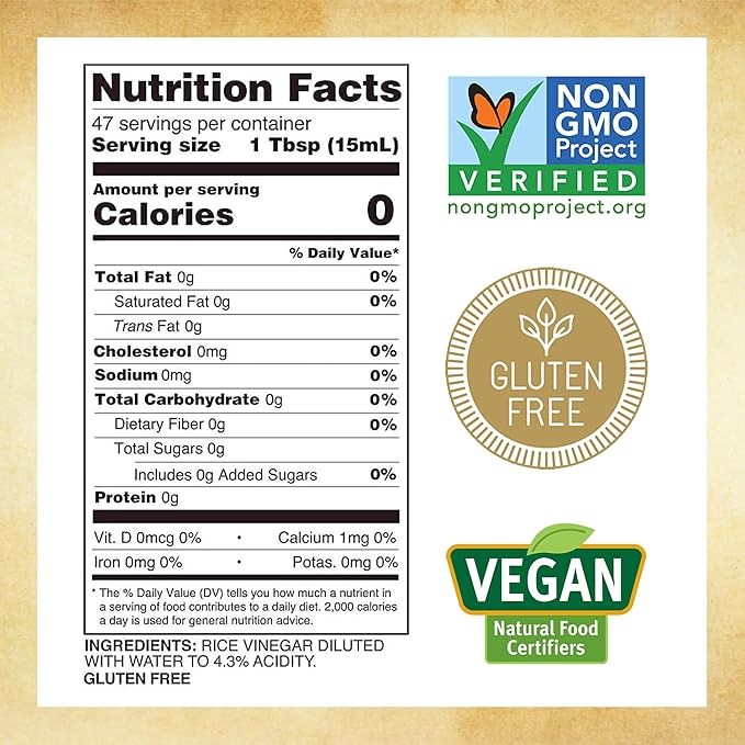 - EAT CLEANLY: Our vegan, Kosher, and additive-free rice vinegar is your secret ingredient for wholesome sauces, dips, and vibrant veggies and proteins. Feel good about what you eat!