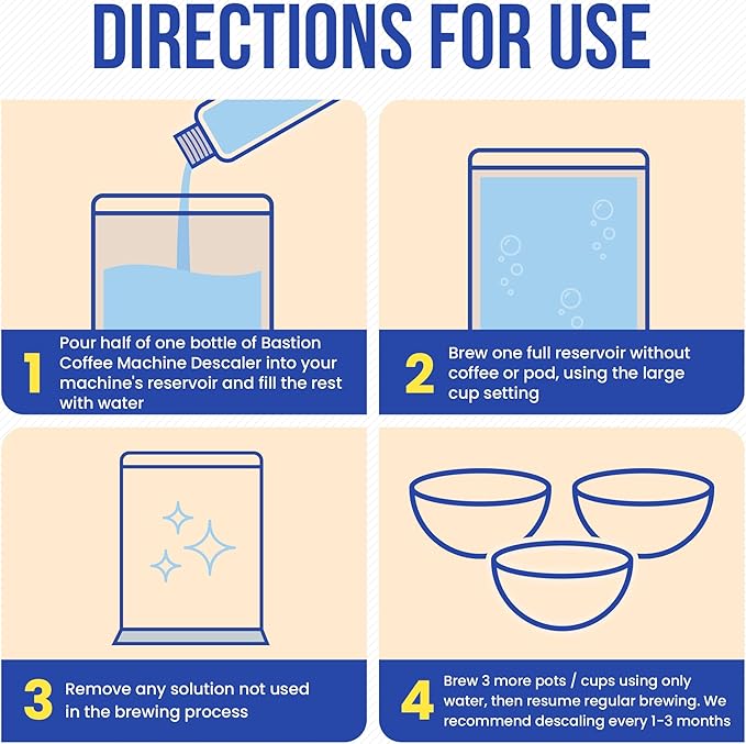 Bastion Coffee Machine Descaler & Cleaner - 2 Uses. (1 Bottle) Universal Descaling Solution Compatible with Keurig, Nespresso, Delonghi and All Single Use Coffee and Espresso Machines