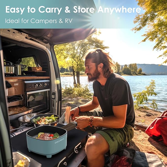 - 【Ultra Non-Stick Honeycomb Surface】Made with a 5h hardness aluminum alloy interior and an upgraded honeycomb non-stick coating, Cullinsss electric pan for cooking is designed to prevent food from sticking and ensure effortless cleanup. Say goodbye to stubborn residue and hello to healthier cooking! Our non-stick coating requires less oil, making your meals lighter and more nutritious. It is safe and environmentally friendly, so you can cook with peace of mind with the electric frying pan.