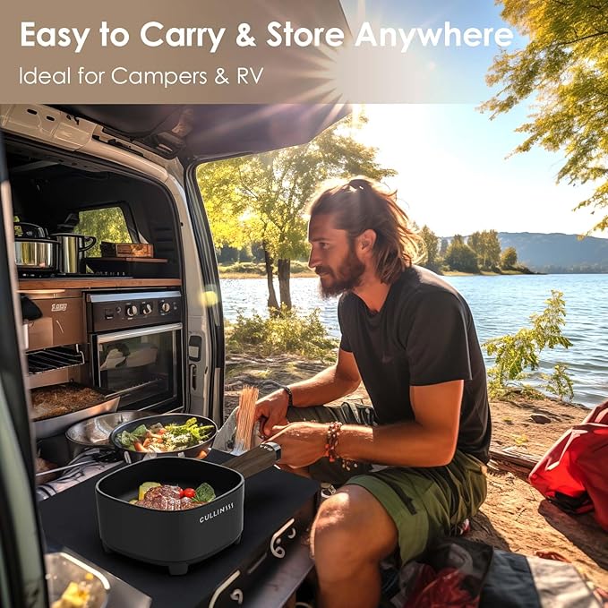 - 【Compact & Convenient】Cullinsss portable electric pot - the perfect companion for those on the go! With a compact D8" x W8" x H2.5" size and lightweight 4.95lb design, this portable pot is easy to carry and store whether you're residing in a dorm, traveling in an RV, or planning a picnic. The 2L capacity is ideal for 2-3 people, perfect for hot pot gatherings or friend parties. Upgrade your cooking game and enjoy delicious meals wherever you are with Cullinsss' hot pot electric cooker.