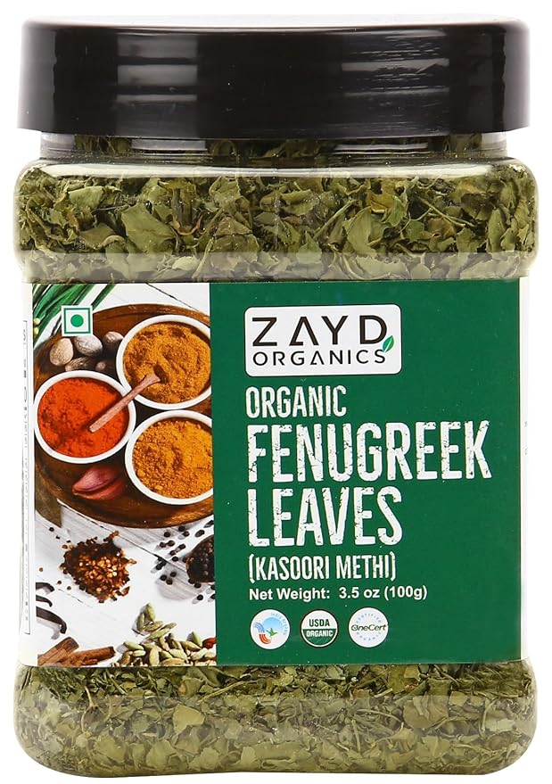 Zayd Organic Kasuri Methi, Organic Kasoori Methi, Organic Dried Fenugreek Leaves, USDA Organic, Indian Origin, 100g (3.5oz)