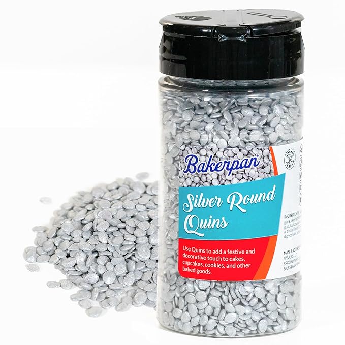 Bakerpan Quins Sprinkles for Cake Decorating - 4 Ounces - Silver Edible Confetti Sprinkles for Cupcakes, Ice Cream, Cookies, Cakes (Made in USA)