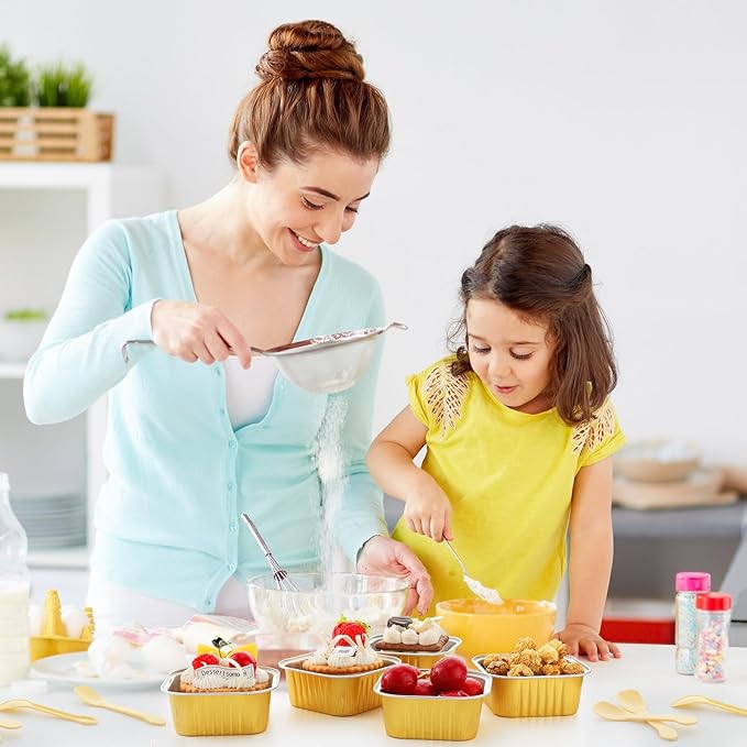 - Suitable Size: these aluminum baking cups measure about 2.75 x 2.75 x1.46 inches and about 5 oz in capacity, making them nice for a variety of desserts, such as cupcakes, puddings, pies and so on, which can be easily eaten with a spoon