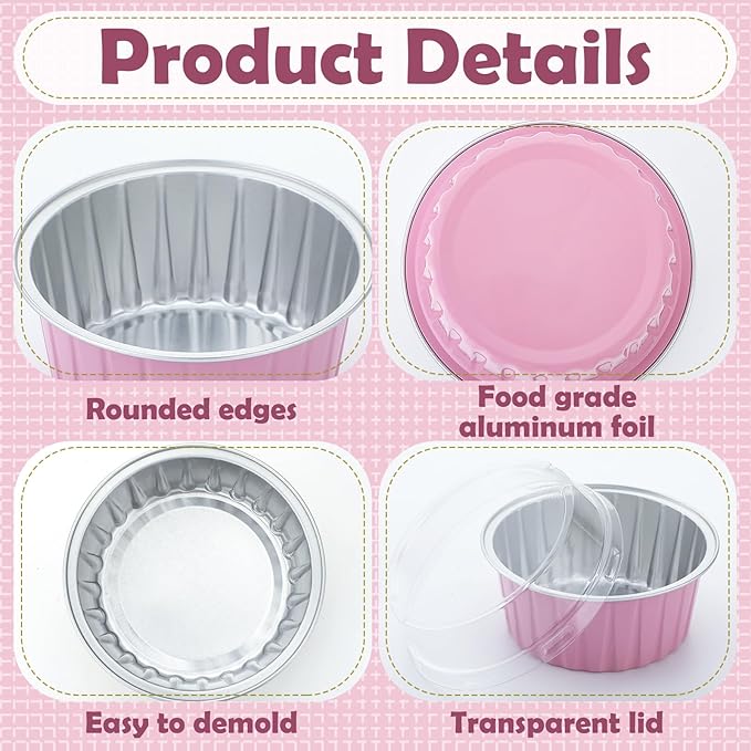 - Suitable Size: these aluminum baking cups measure about 2.5 x 2.56 x 1.45 inches and about 5 oz in capacity, making them nice for a variety of desserts, such as cupcakes, puddings, pies and so on, which can be easily eaten with a spoon