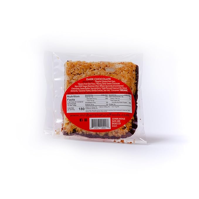 Mrs. Barr’s Natural Foods Granola Bars | Dark Chocolate | Certified Organic Gluten Free Oats | Soft Texture | Small Batch | Gourmet Quality | Real Ingredients | 2.5 Ounces (6 Pack)