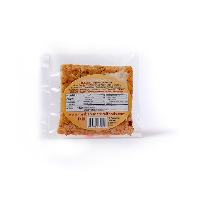 Mrs. Barr’s Natural Foods Granola Bars | Brown Sugar Vanilla | Certified Organic Gluten Free Oats | Soft Texture | Small Batch | Gourmet Quality | Real Ingredients | 2.2 Ounces (6 Pack)