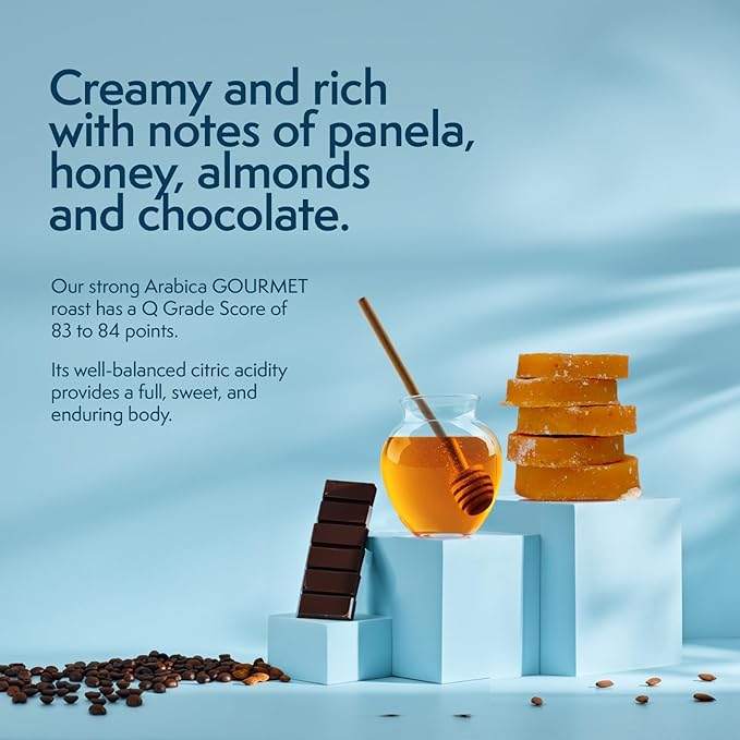 - Flavor : Dark Chocolate · Honey · Panela Caramel Sweetness
