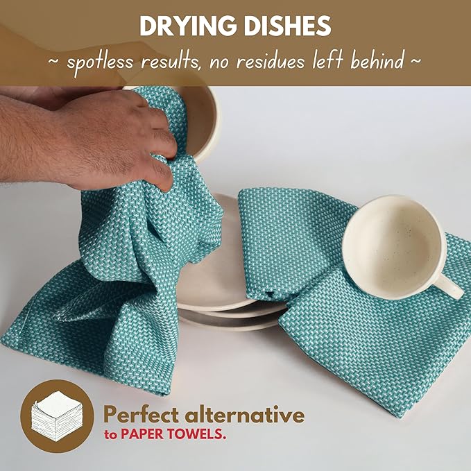 - SUPER ABSORBENT: Say goodbye to wet dishes and spills! Our towels soak up water in a flash, making your kitchen cleanup quick and effortless.