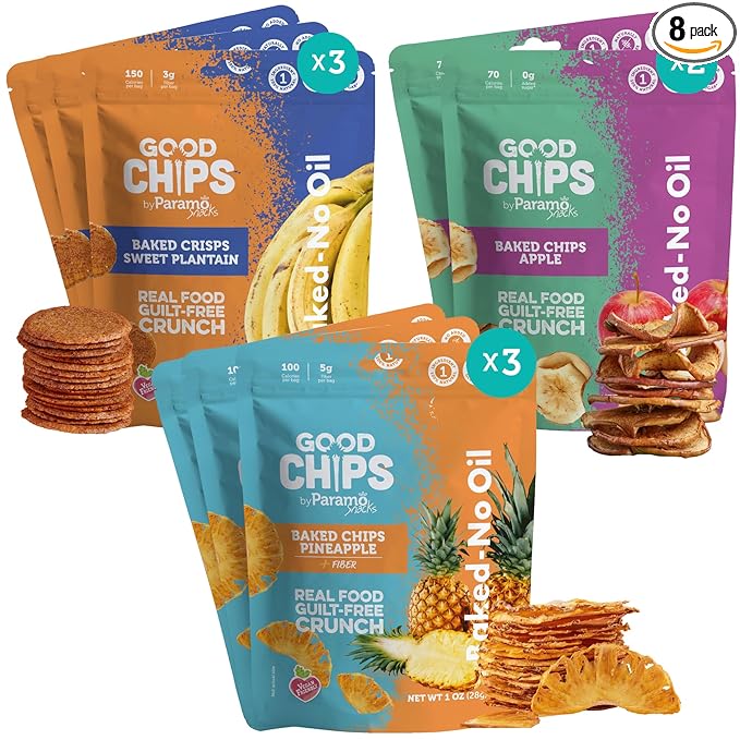 Good Chips Baked Crunchy Apple, Pineapple, Sweet Plantain - Crispy, Oil Free, Healthy, Naturally Sweet Dried Fruit Snacks Variety Pack - Pack of 8