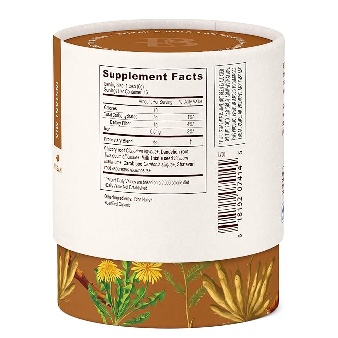 - THIS DELICIOUS HERBAL coffee alternative combines organic milk thistle seed, chicory, dandelion, shatavari, and carob to support a healthy gut microbiome and nourish the body with natural, grounded energy.*